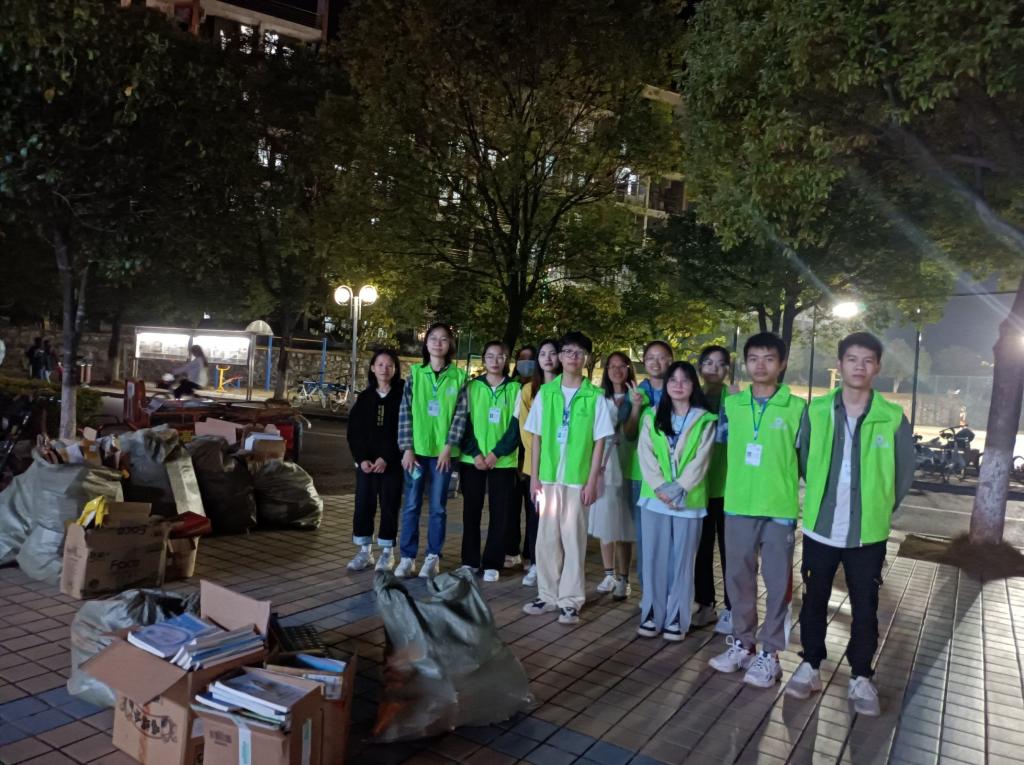 益馨之家成员们到宿舍宣传废品回收利用的知识,倡导同学们树立保护环境、节约资源的理念,同时帮助同学们解决废旧物品有效利用的问题。满满当当的编织袋装着的不仅是废品,更是同学们爱心的呈现,最后大家齐心协力对回收的废品进行整理分类。