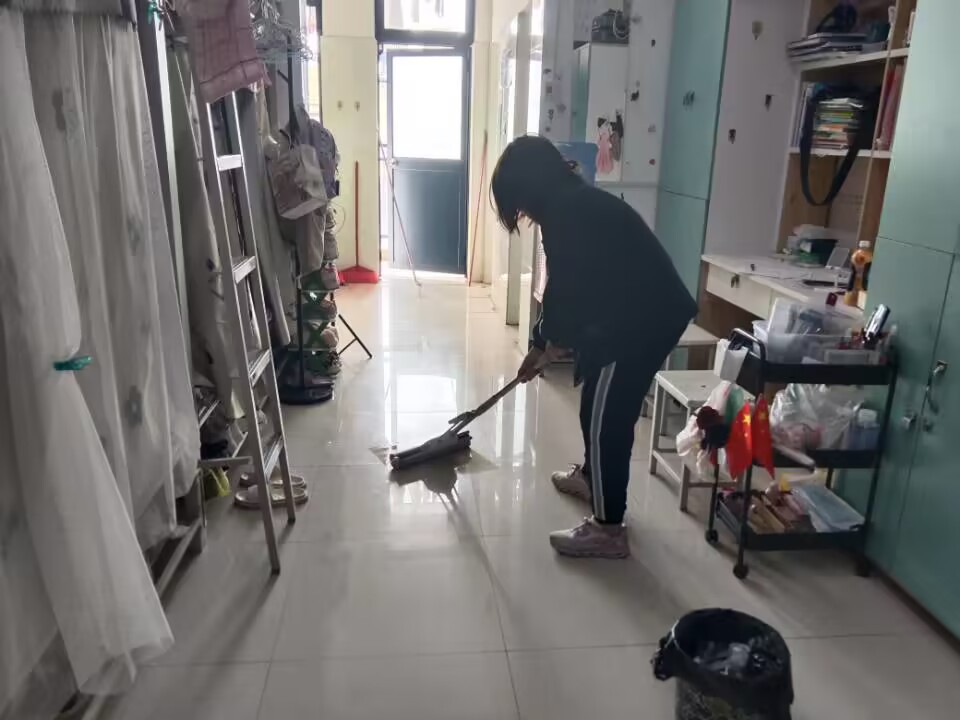 宿舍生活环境与同学们的健康息息相关,同学们认真对宿舍的床铺、地板、柜子等进行整理,发扬不怕脏、不怕累的精神,整个宿舍经过打扫焕然一新。宿舍卫生大扫除活动的开展不仅改善了同学的生活环境,同时也让大家进一步认识到宿舍卫生的重要性,督促同学们养成良好的生活习惯,更加了解到劳动的重要性。