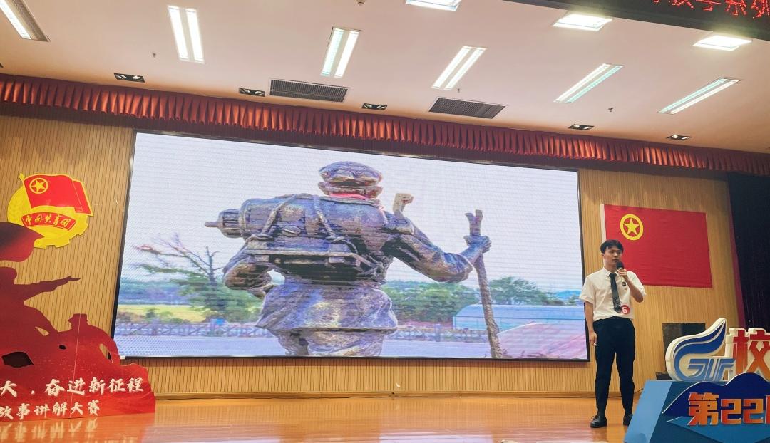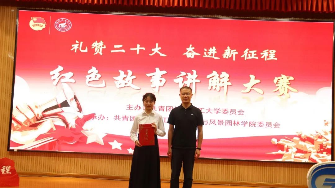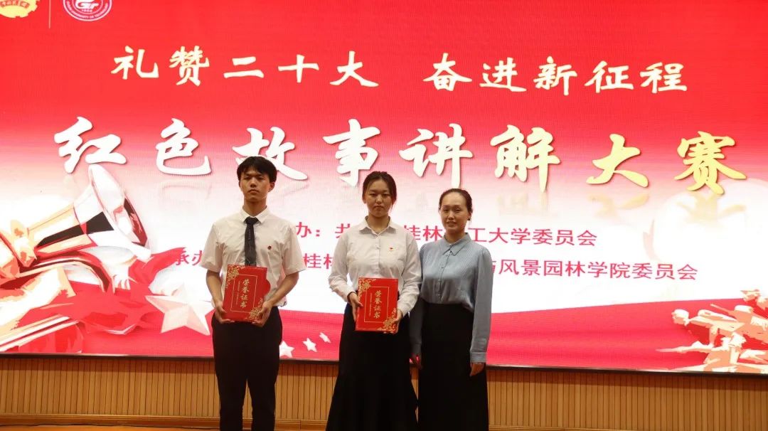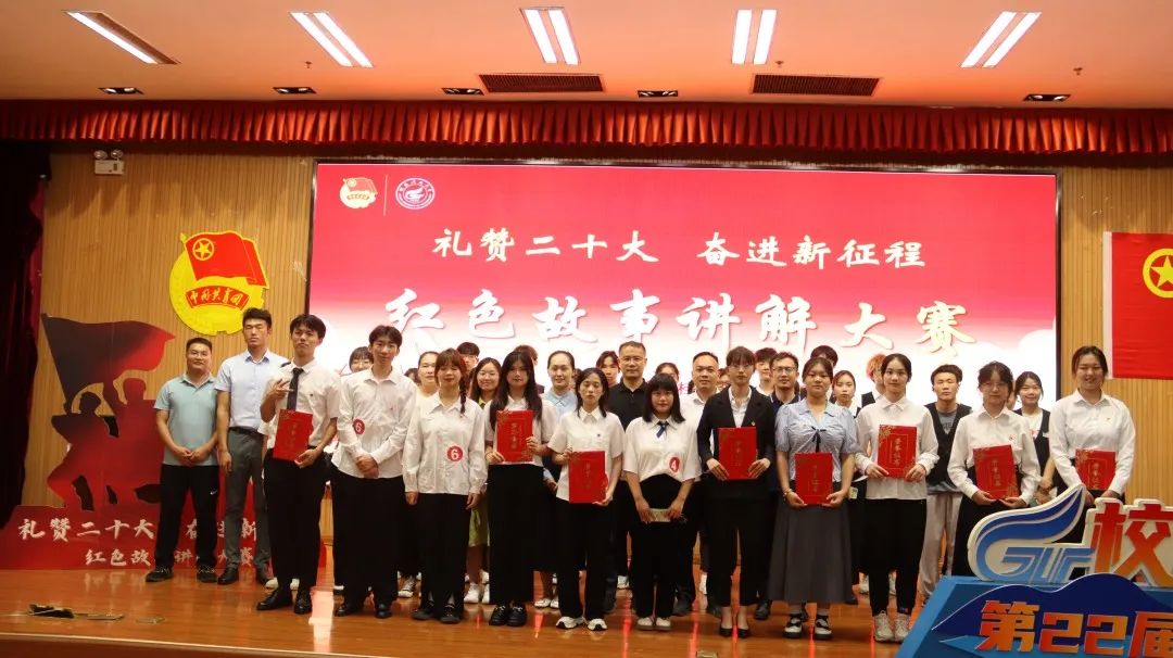 各学院参赛队伍经过初赛、复赛等环节的比拼,最终决出8支参赛队伍进入学校决赛。比赛现场,选手们怀着对党和祖国的一片深情,对革命先辈无比崇敬的心情,激荡着满腔爱国热忱,讲述了《革命圣地西柏坡》《红军战士余明洪》《长征模范谢宝金》等感人故事,将观众带入了那段波澜壮阔的历史时光,感受故事背后蕴藏的红色力量。展现了桂工青年学习践行党的二十大精神的政治觉悟,忠诚使命,奋斗精神。各参赛选手你追我赶,比赛高潮迭起,现场气氛热烈。经过激烈的角逐,最终评选出一等奖1名、二等奖1名、三等奖2名、优秀组织奖4名。各位嘉宾老师为获奖同学颁奖。
