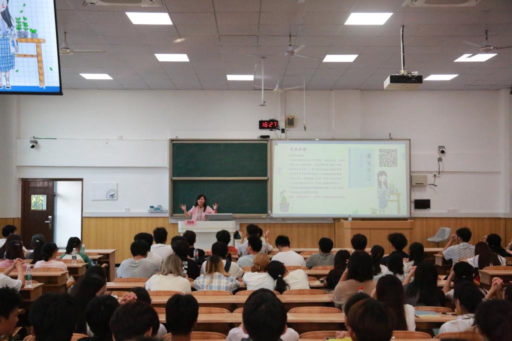 讲座中,谭老师以大学新生适应与成长为主题,围绕大学学习、生活方面的特点,给学生们全面深入地分析当代大学生的困惑,带领同学们理解自己的心理模式,教会同学们如何科学地进行时间管理。讲座现场氛围融洽,谭咏梅老师带着同学们互动,做有趣的小游戏,对于同学们提出的问题和疑惑,谭老师结合自身经历进行了逐一解答。