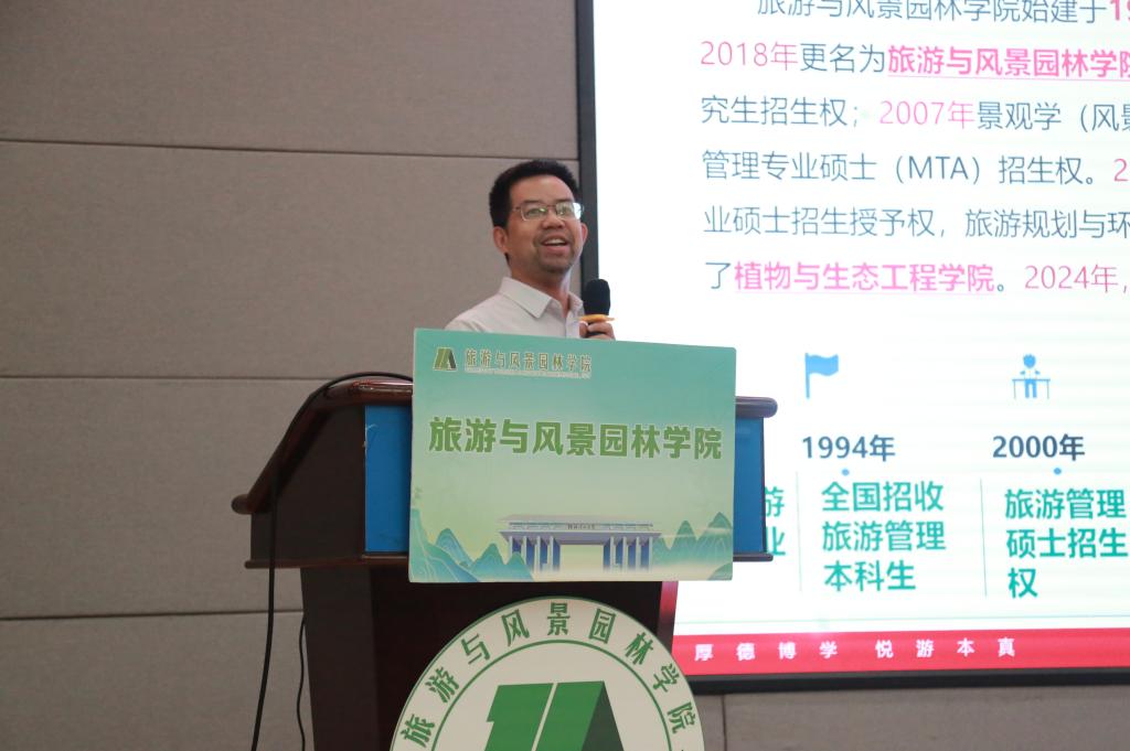 学院党委副书记、院长郑文俊围绕学院办学历史、学科建设、人才培养成效和未来发展等方面向新生们介绍了学院概况。他对新生们提出几点希望:一是要弘扬担当精神,勇担时代责任,在实干中展现青春作为;二是要科学规划学业,夯实专业基础,勤于思考、善于发问,不断提升综合素养;三是要自觉践行“厚德、博学、悦游、本真”的院训,努力成长为有德行、有学识、有情怀的青年人才。