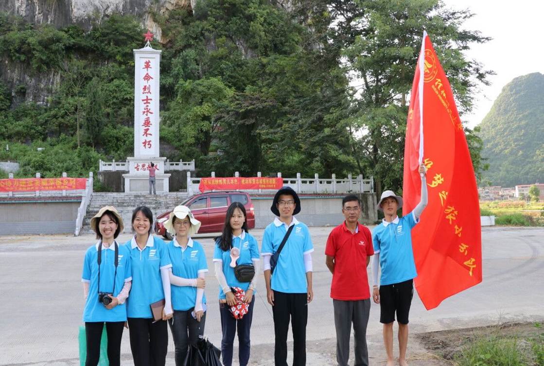 指实践队员在古蓬镇古思起义纪念碑前合影