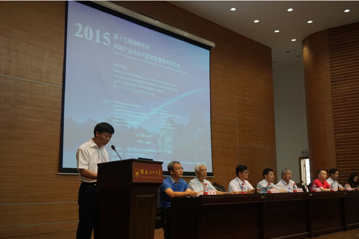 为了加强中国大陆和台湾两岸休闲农业与乡村旅游研究的交流与合作,探讨休闲农业与乡村旅游创新发展路径,由中国科学院地理科学与资源研究所、中国地理学会乡村景观与休闲产业研究会、中国人类学民族学研究会民族旅游专业委员会、台湾暨南国际大学、台湾亚洲大学休闲与游憩管理学系、台湾乡村旅游协会主办,桂林理工大学承办,国际都市农业基金会中国区域中心、北京农学院、凯里学院、台湾观光创新协会、台湾统茂休闲旅馆集团联合承办的2015年(第十三届)海峡两岸休闲产业与乡村旅游发展学术研讨会于7月5日至6日在广西桂林桂林理工大学隆重举行。