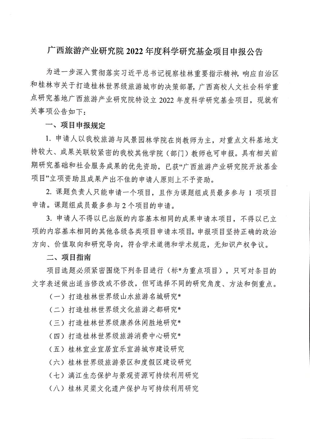 广西旅游产业研究院2022年度科学研究基金项目申报公告