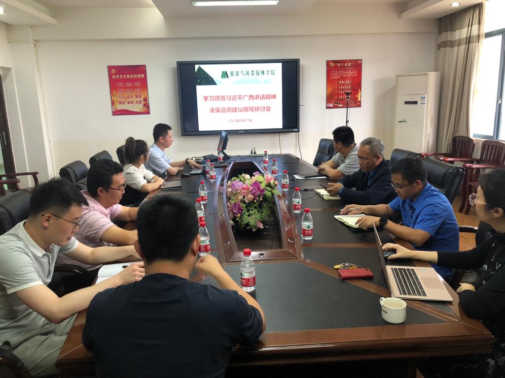 5月17日上午,广西高校人文社会科学重点研究基地——广西旅游产业研究院(以下简称“基地”)在04509会议室开展了决策咨询报告撰写的集体研讨活动,本次研讨活动围绕着学习贯彻习近平总书记4月25日至27日视察广西时的重要讲话和重要指示精神展开。