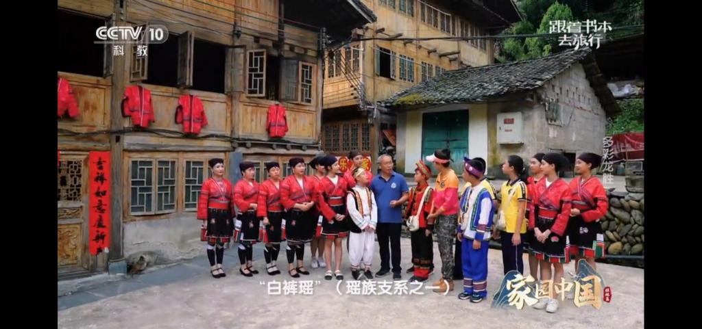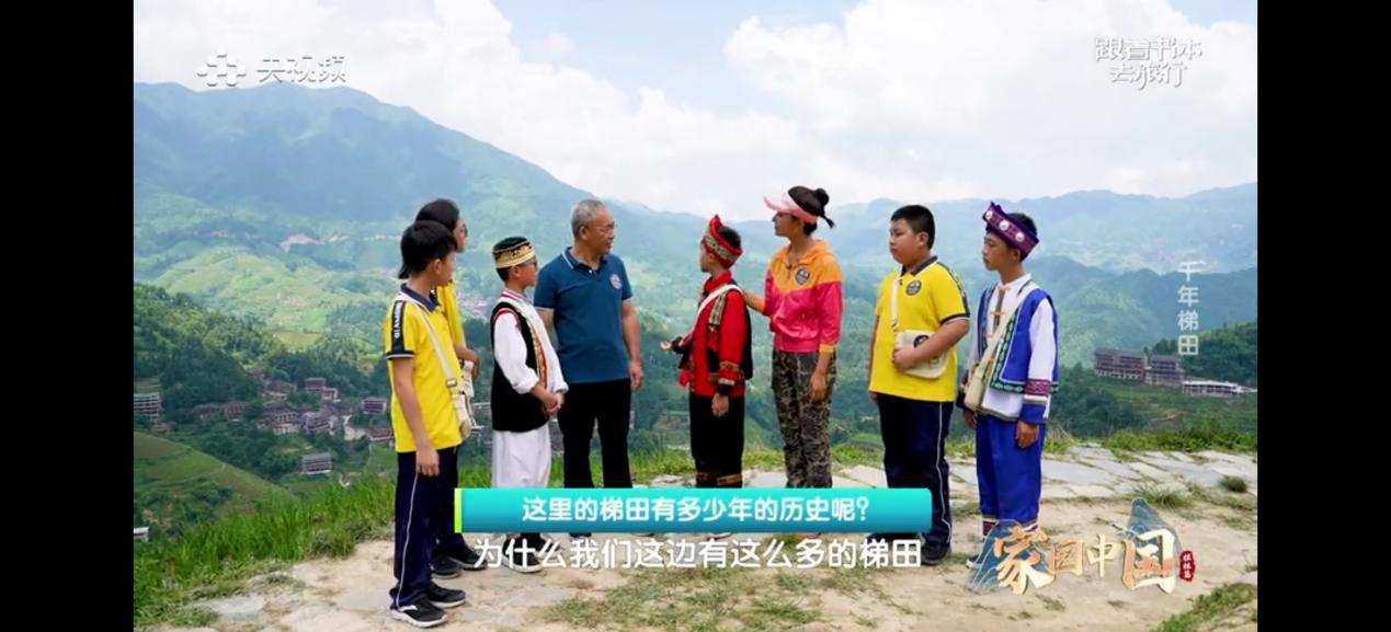 中国是一个多民族的大家庭,千百年来各民族在中华民族的大家庭中守望相助,用勤劳与智慧创造了一个又一个的奇迹,龙脊梯田是众多奇迹中壮美又极具特色的一个。吴忠军教授带领书本旅行团探访云端上的梯田,他为大家讲述了龙脊梯田的历史、自流灌溉系统以及藕耕等知识。吴教授告诉同学们龙脊梯田有两千三百年的历史,龙胜被认定为“世界梯田原乡”。在《多彩龙胜》节目中,吴教授带领书本旅行团参观了金竹壮寨和黄洛瑶寨、学习了干栏建筑和石地基、品尝了壮家油茶。他介绍了穿红衣、留长发村和晾衣节等风俗的由来,并告诉同学们壮家油茶是龙脊四宝之一,也是国家农业的地理标志产品。