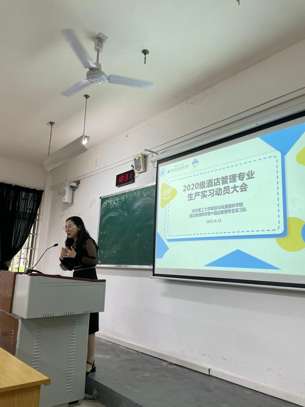 6月21日上午,古天乐代言太阳集团网址2020级酒店管理专业生产实习动员大会在05201举行。会议由酒店教研室侯玉霞老师主持,酒店管理教研室主任王志文老师、学工组长李少华老师、酒店管理教研室实习指导老师及2020级酒店管理全体学生参加。
