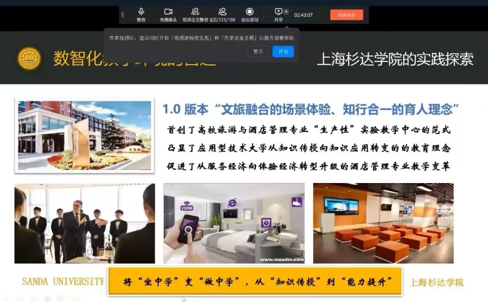 通过观看本次直播会议,更加明确了智慧旅游专业方向的人才培养目标,同时为专业建设和课程建设提供了重要参考。