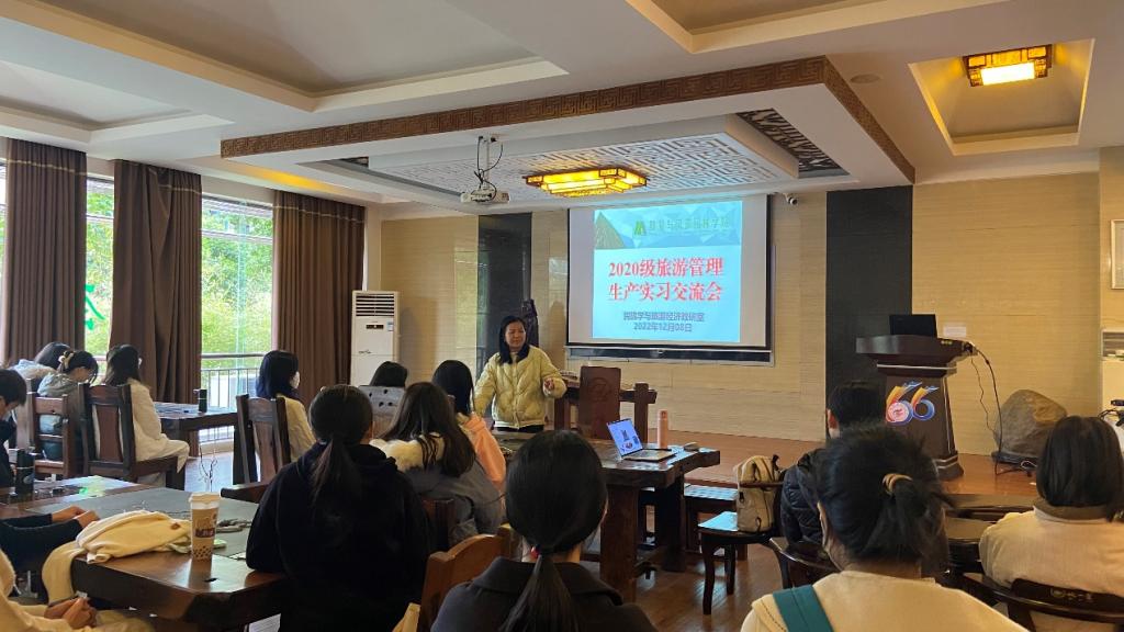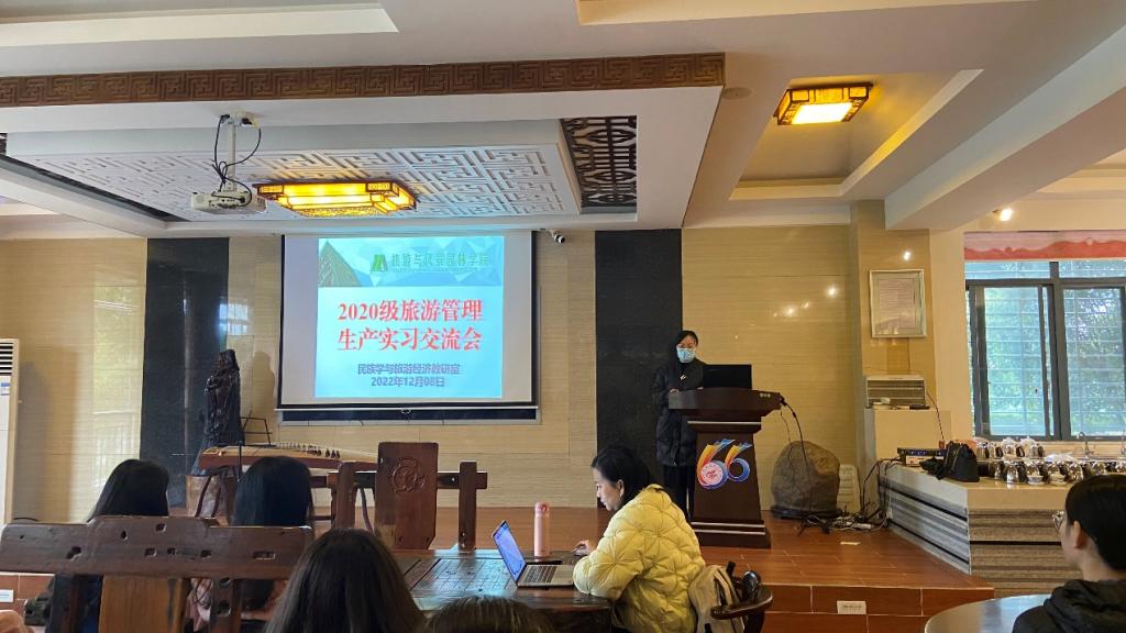 为了加深旅游管理专业学生对生产实习认知和了解,加强旅游管理专业师生之间的交流,民族学与旅游经济教研室于2022年12月8日上午10点在学院茶艺室举行了2020级生产实习交流会。交流会由毛世红老师主持,民族学与旅游经济教研室杨艺主任出席。