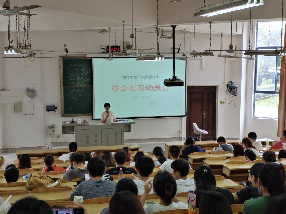 2023年6月25日下午,在04110召开了2021级旅游管理专业综合实习动员大会,实习指导老师和全体2021级旅游管理专业学生参加了动员会。