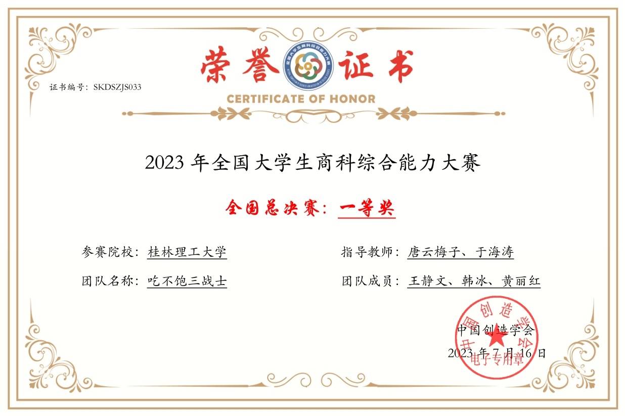 2023年全国大学生商科综合能力大赛自初赛起共历时数个月。地区赛环节,古天乐代言太阳集团网址学生队伍在老师们的悉心指导下,紧密协作,灵活地运用所学的专业知识,在激烈的模拟商战中突出重围,成功晋级全国半决赛。而后,在激烈的全国半决赛环节,这支队伍展现了沉着冷静的优良素质,通过科学地制定企业发展战略,认真执行各项决策,仔细分析多项数据报表,合理运用管理工具,并不断优化市场竞争策略......最终脱颖而出,晋级全国总决赛。最终,通过高强度、紧张而又激烈的全国总决赛比拼,她们不负众望,取得了优异成绩!