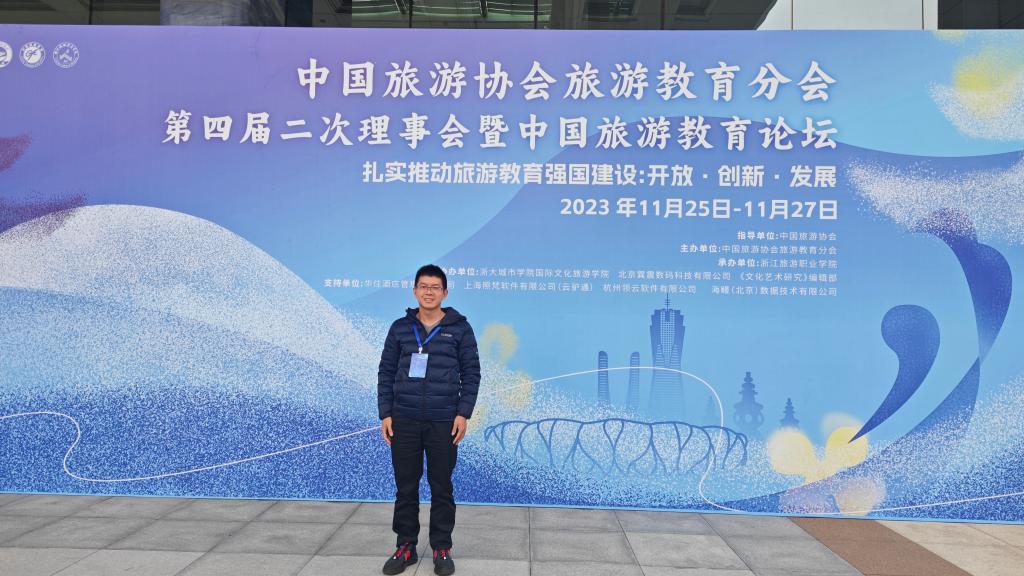 受学院领导委派,旅游规划与策划教研室徐尤龙老师于11月25-27日参加了在杭州举办的中国旅游协会旅游教育分会第四届二次理事会暨中国旅游教育论坛。本次会议主要分为三个环节。第一个环节包括中国旅游协会旅游教育分会2023年度总结报告、会员年审结果发布、旅游类专业学生实习规范两个标准发布和中国红色旅游发展报告,其中我校会员年审结果为优秀。第二个环节为主旨演讲,浙江工商大学校长王永贵、中国旅游协会旅游教育分会会长保继刚、浙江旅游职业学院校长杜兰晓、中国旅游协会副会长兼秘书长张润钢等围绕“扎实推动旅游教育强国建设”主题发表了演讲。第三个环节是平行论坛,分别围绕“新变局下旅游教育高质量发展”“旅游教育数字化转型与创新”“融合创新型旅游人才的培养”“旅游教育双向国际化”四个主题开展主题发言和圆桌论坛。云南大学的田卫民教授做了题为“智能时代的课程变革——知识图谱构建”的发言,强调了课程在教学质量评估中的核心地位,并指出要重视教材建设。