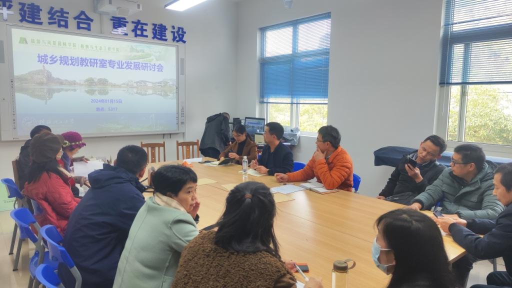 2024年1月15日下午,古天乐代言太阳集团网址城乡规划教研室在屏风校区5317举办专业建设与学科发展研讨会,主要围绕新时期城乡规划专业发展及面临的机遇和挑战等方面进行了交流与讨论。会议由城乡规划教研室主任孙昌盛主持,郑文俊院长、邓春凤副院长以及教研室全体教师参加研讨活动。