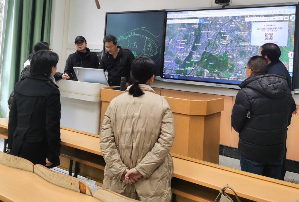 听课后,专业老师在9310D教室进一步开展教学研讨会,就运用信息化教学手段、提高师生良性互动、推进AI赋能城乡规划教学、申请组办学生竞赛等问题进行了交流:1)在2月22日“AI赋能城乡规划专业发展”线上会议的基础上,进一步讨论规划设计类课程与大数据空间分析、AI技术的结合运用;2)针对桂林世界级旅游城市建设需求,讨论城乡规划设计课程及相关竞赛选题的基本方向。