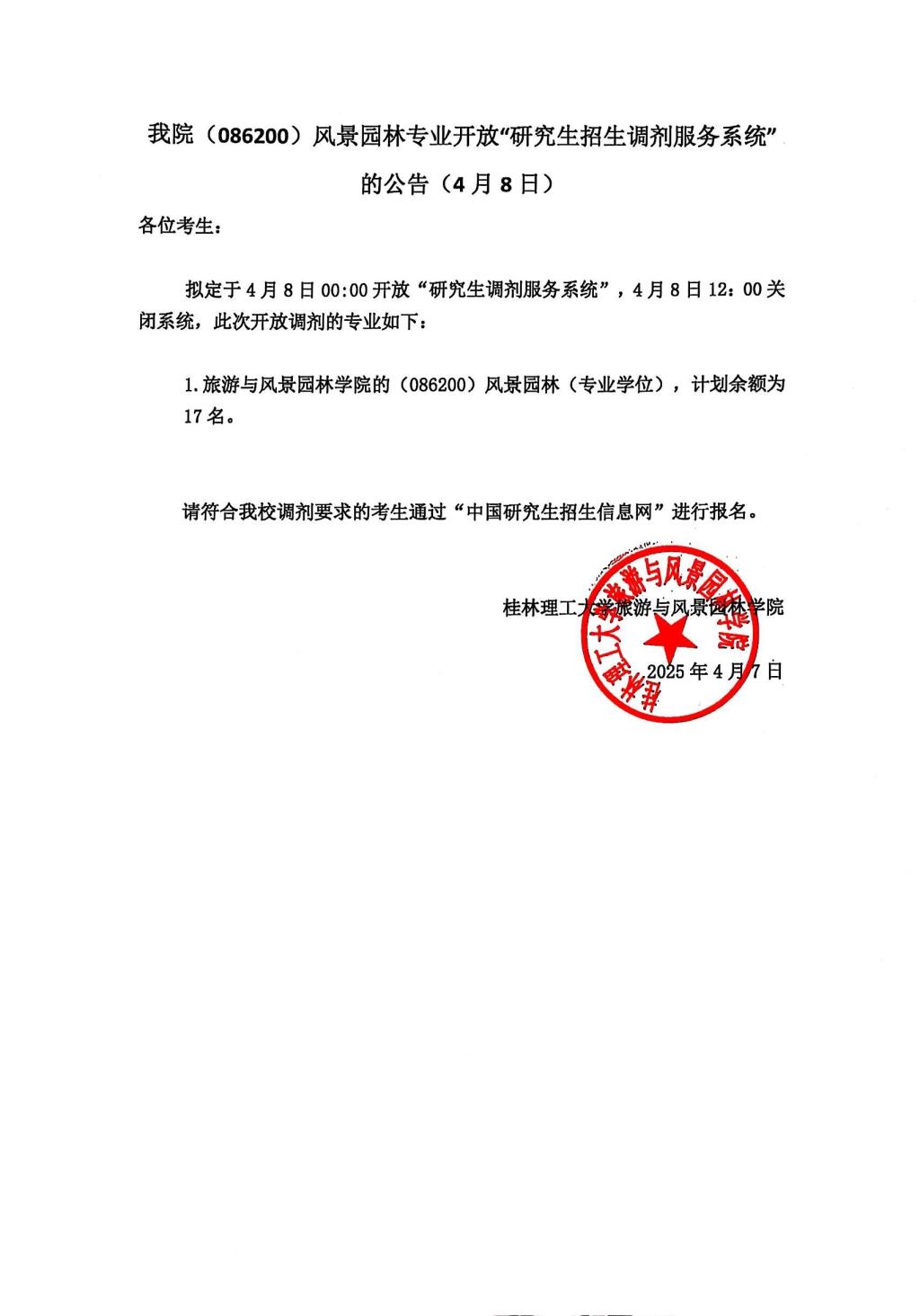 古天乐代言太阳集团网址(086200)风景园林专业开放“研究生招生调剂服务系统”的公告