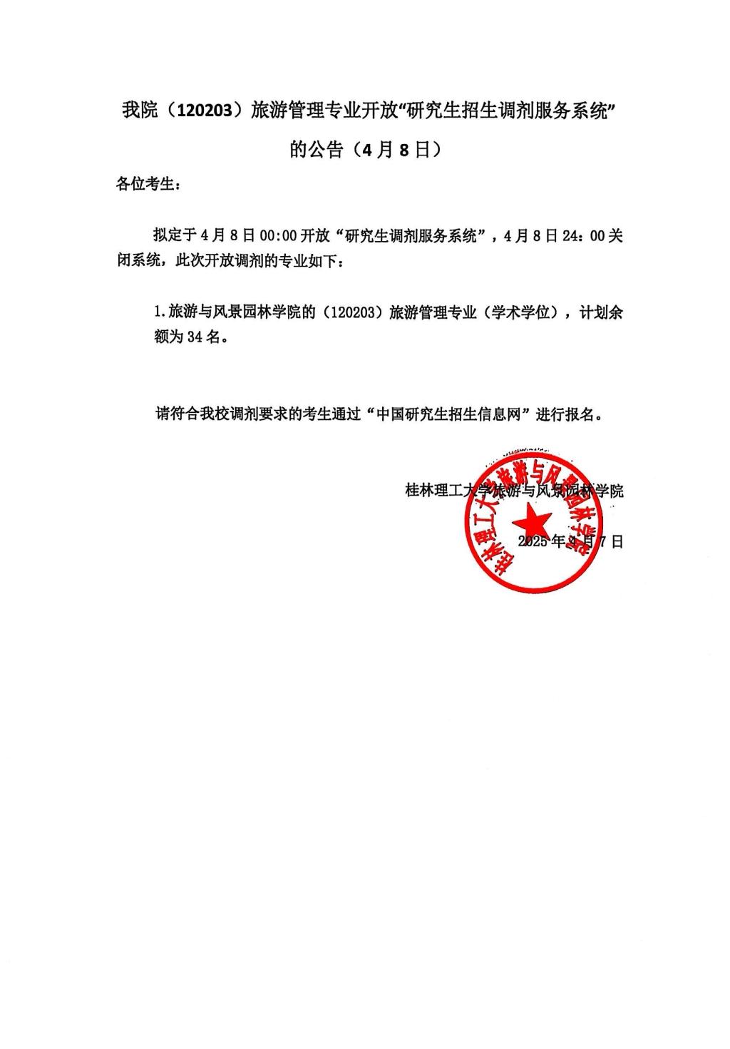 古天乐代言太阳集团网址(120203)旅游管理专业开放“研究生招生调剂服务系统”的公告
