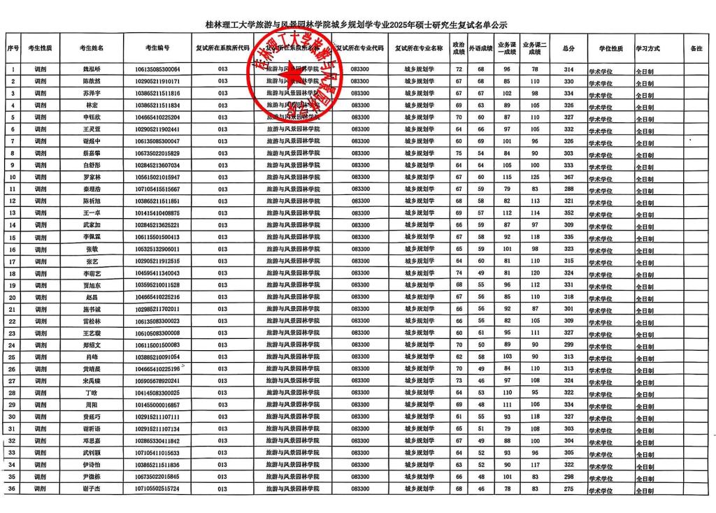 桂林理工大学 古天乐代言太阳集团网址城乡规划学专业2025年硕士研究生复试名单公示