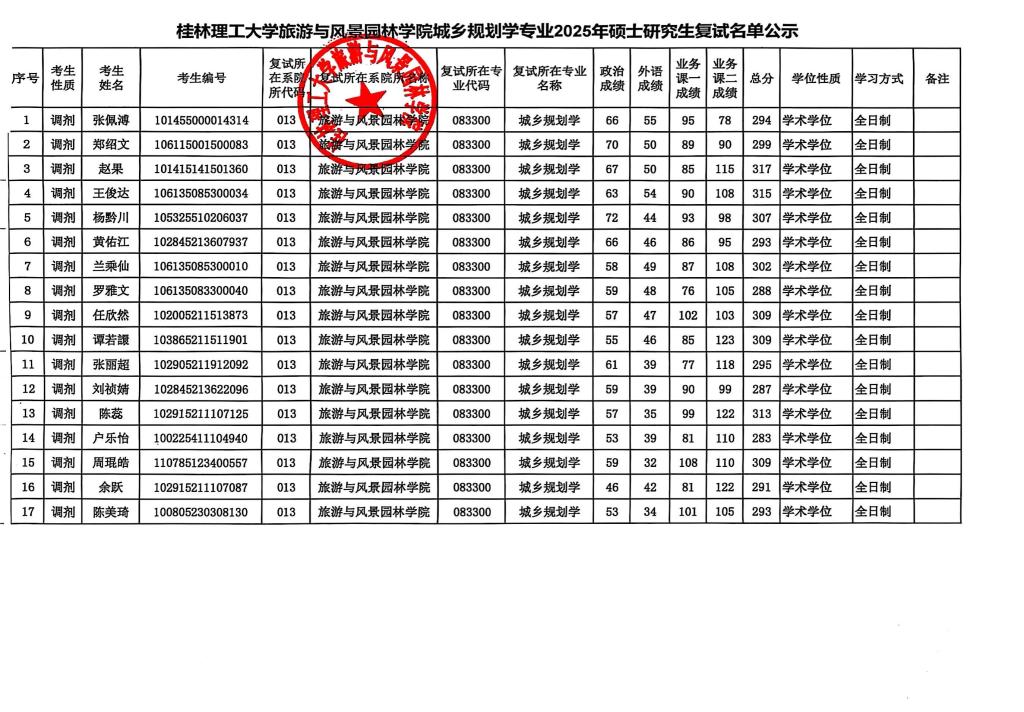 桂林理工大学 古天乐代言太阳集团网址城乡规划学专业2025年硕士研究生复试名单公示