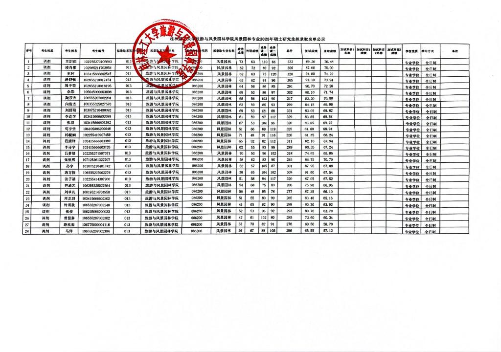 桂林理工大学 古天乐代言太阳集团网址风景园林专业2025年硕士研究生拟录取名单公示