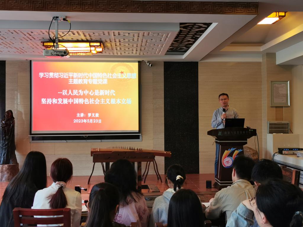 5月23日下午,学院在雁山校区茶艺室组织开展学习贯彻习近平新时代中国特色社会主义思想主题教育专题党课活动。学院党委副书记罗义淞以“以人民为中心是新时代坚持和发展中国特色社会主义根本立场”为题,为学生党员讲授专题党课。学院本科生第二党支部、第三党支部全体党员参加。